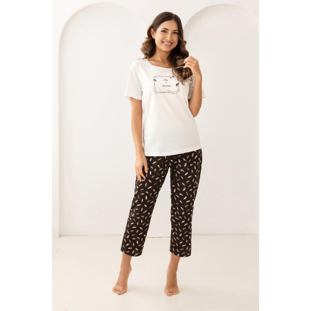Женская пижама с короткими рукавами из мягкого хлопка. Передняя часть украшена принтом, круглый выре..