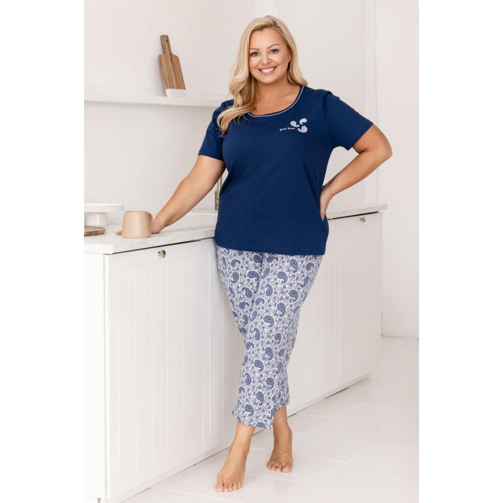 Женская пижама с рукавом 3/4 и принтом спереди. Капри в тон с удобным поясом на шнурке. Состав: 100%..