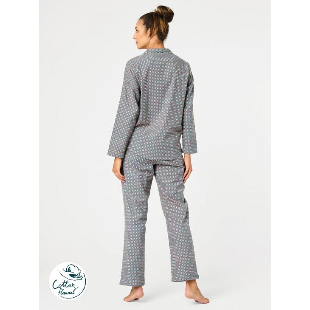 Элегантная женская пижама из теплой ткани. Верх с классическим воротником и застежкой на пуговицы сп..