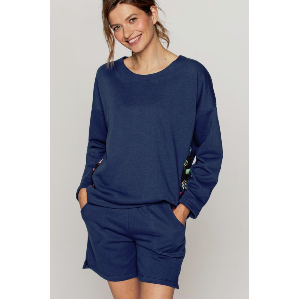 Wygodny komplet – bluza i spodenki z wysokogatunkowej, trwałej dzianiny dresowej, komfortowej w użytkowaniu. Modny, młodzieżowy fason.