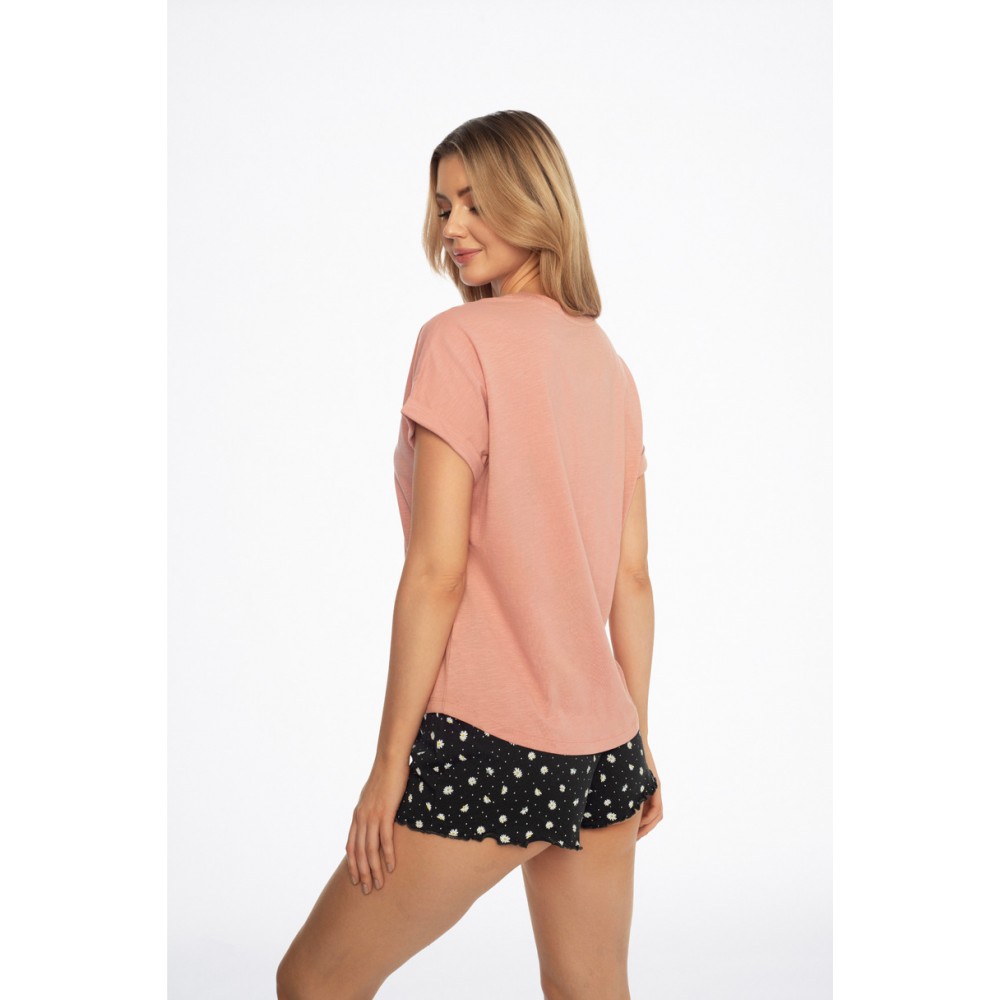 Женская пижама из высококачественного мягкого хлопка. У этой футболки с короткими рукавами нежный принт спереди. В комплекте есть шорты с узором в тон.