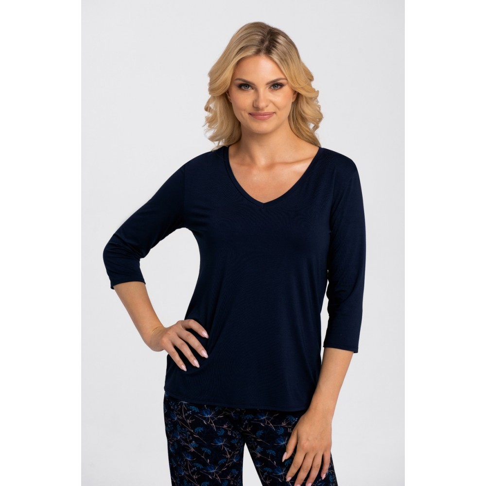 Элегантная женская пижама с вискозой. Женская футболка с рукавами 3/4 и длинные брюки с узором в тон.