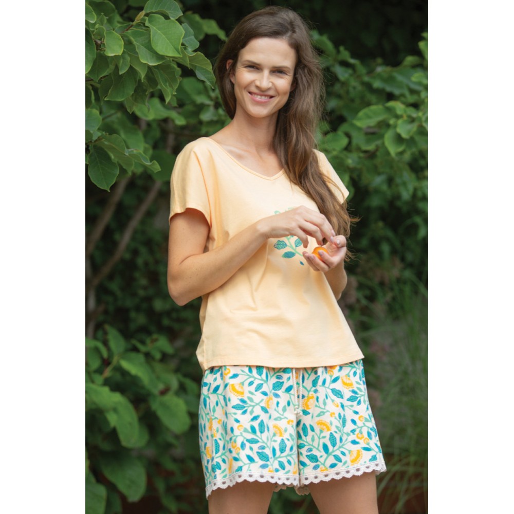 • Женская пижама из высококачественного хлопка, футболка с короткими рукавами и аппликацией, короткие, разноцветные шорты,..