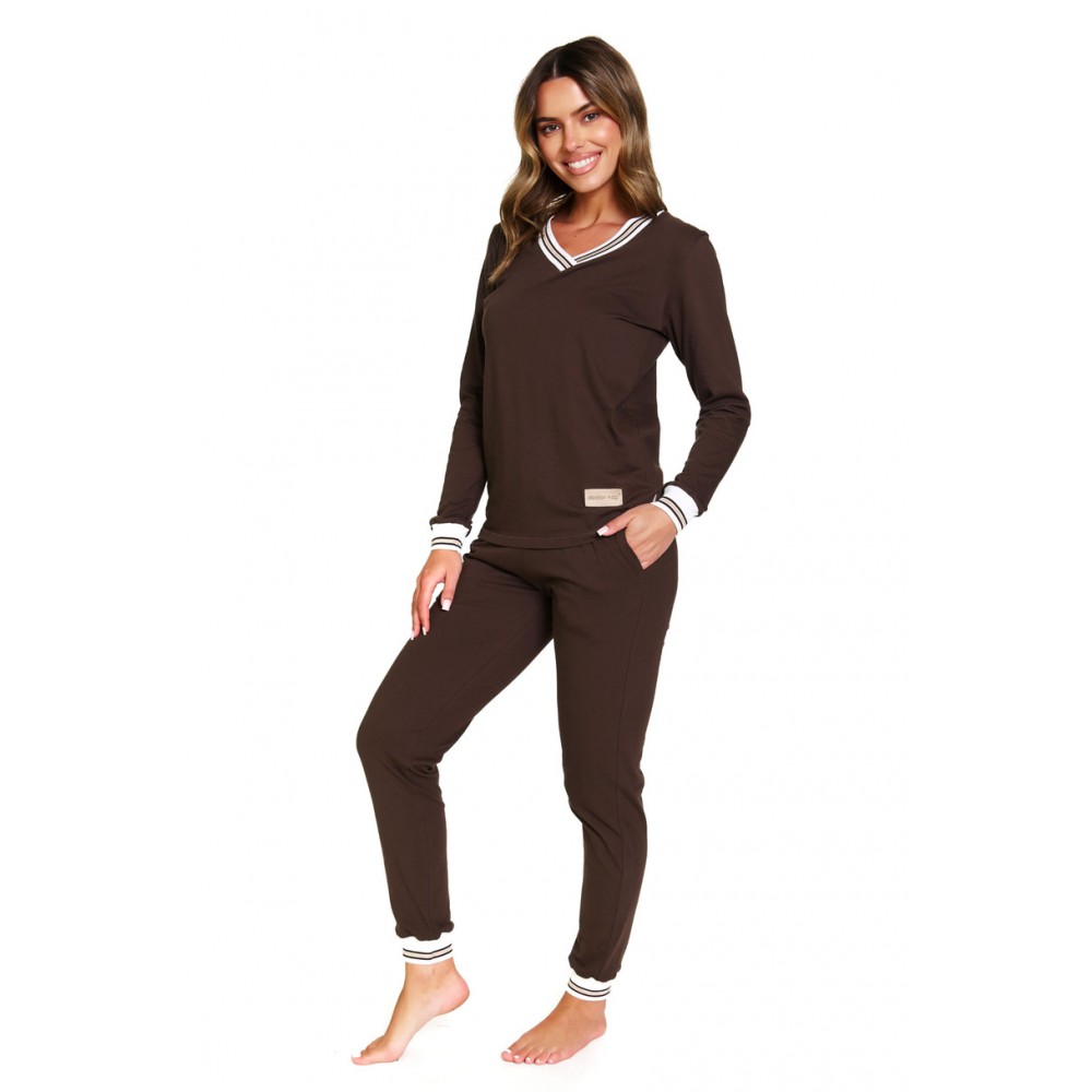 Женская пижама PM.4504 J/25 от известного производителя Dr. Nap сочетает в себе комфорт и модный дизайн, что делает ее идеальной не только как пижаму, но и как удобный комплект домашней одежды . Топ с длинными рукавами и V -образным вырезом, украшенный контрастными белыми, красными и серебряными манжетами , придает стилю и подчеркивает женственность.