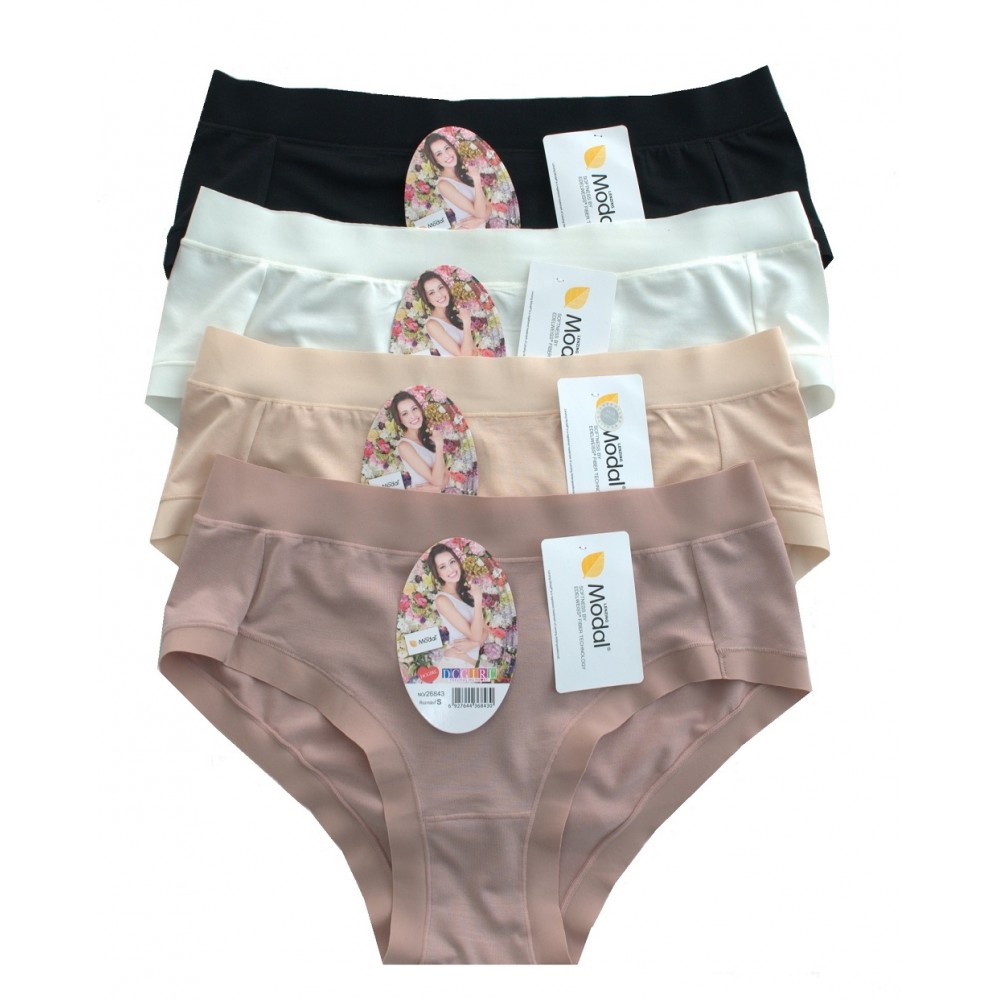 Женские трусики из мягкого модала. Упаковка из 12 штук разных цветов. Один размер в упаковке - M. Состав: 94% модал, 6% эластан.