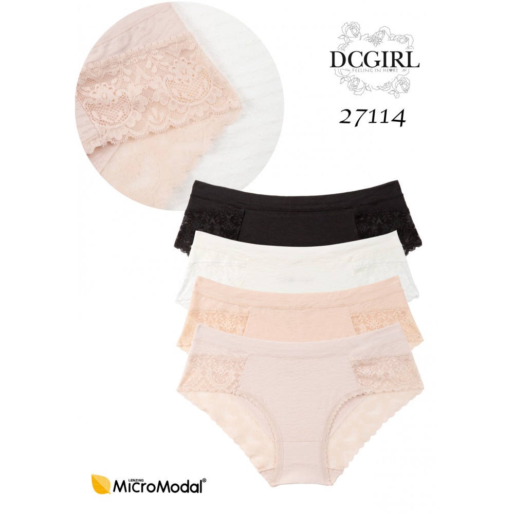 Элегантные трусики из мягкого и дышащего микромодала. Кружевная отделка по бокам и низу добавляет изысканности и женственности. Упакованы по 12 штук в разных цветах и размерах (S, M, L, XL). Состав: 89,5% модал, 10,5% спандекс.