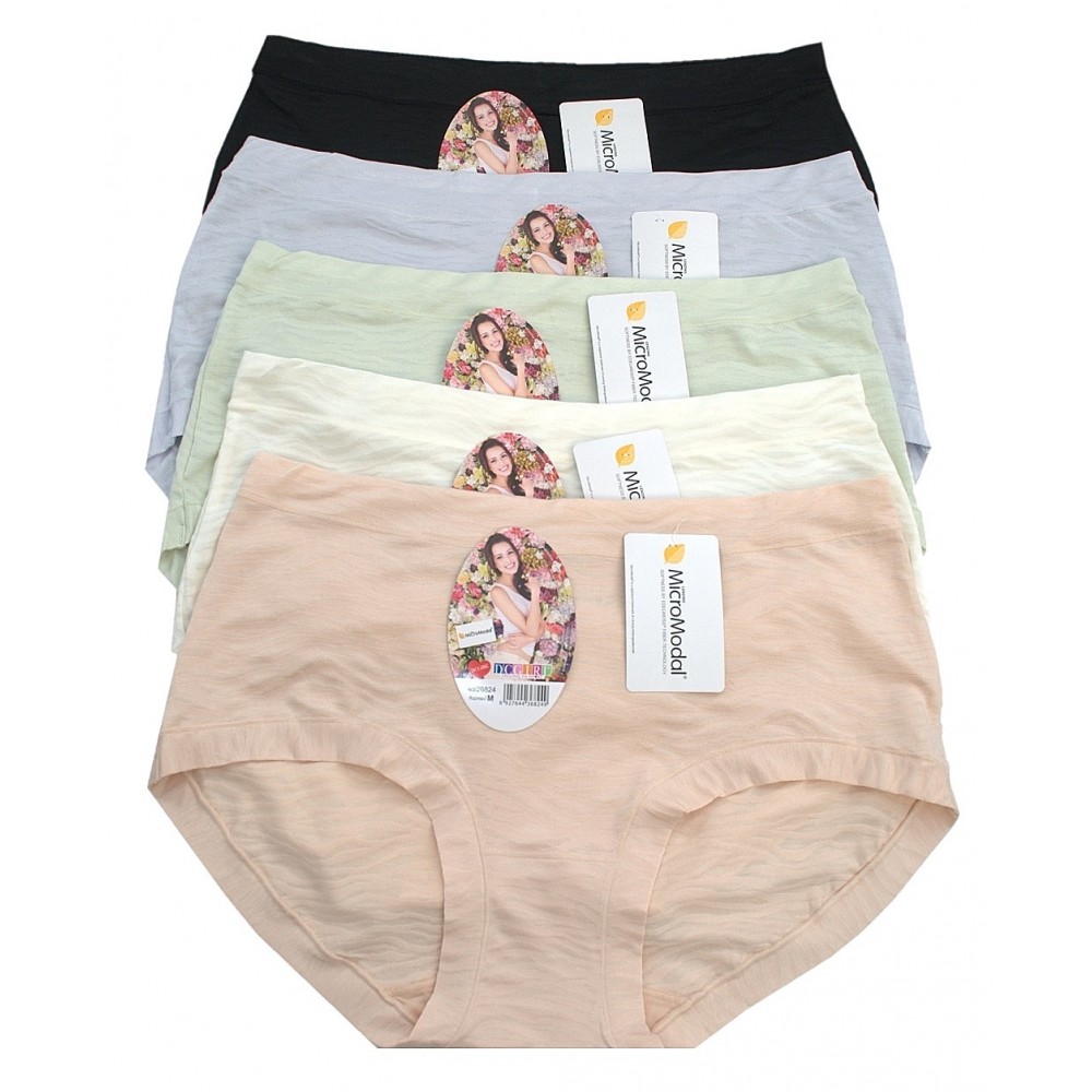 Женские трусики из нежного модала с тонким узором. Высокая посадка. Идеально сидят по фигуре. Упакованы по 12 штук в разных цветах. Размеры в упаковке (S, M, L, XL). Состав: 89,5% микромодал, 10,5% эластан.