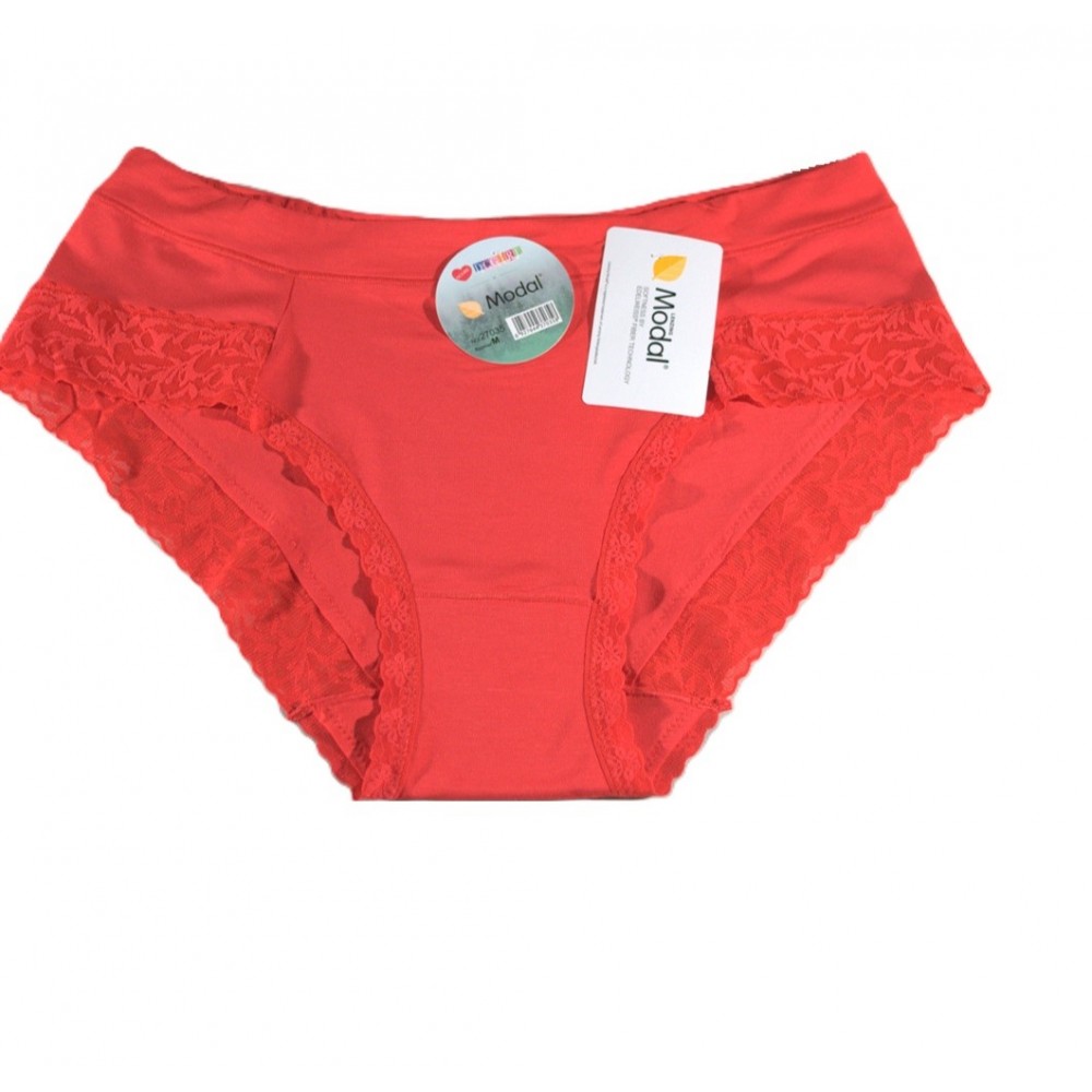 Женские трусики-слипы из мягкого модала. Упаковка из 12 штук разных размеров (S, M, L, XL), цвет красный. Состав: 94% модал, 6% эластан.