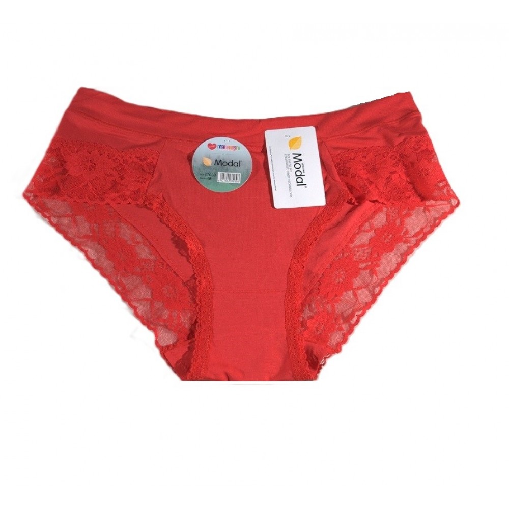 Женские плавки-бикини из нежного модала. Упаковка из 12 штук, цвет красный. Разные размеры (S, M, L, XL). Состав: 94% модал, 6% эластан.