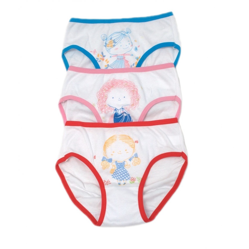 Детские трусики с ярким принтом (спереди и сзади), изготовленные из мягкого (100%) хлопка. Упакованы в 12 штук, представлены в различных узорах и цветах.