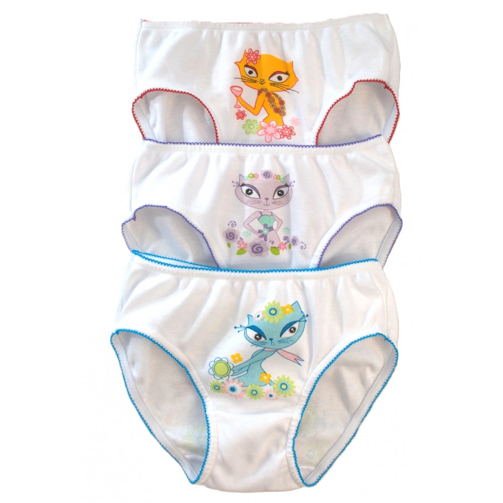 Детские трусики с ярким принтом (спереди и сзади), изготовленные из мягкого (100%) хлопка. Упакованы по 12 штук в упаковках разных размеров, с различными узорами и цветами.