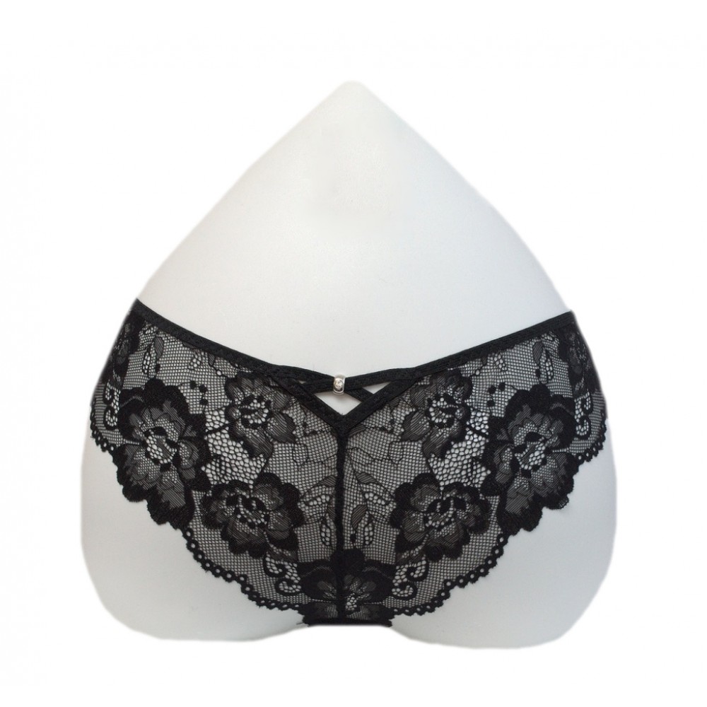 Женские стринги с низкой посадкой. Изготовлены из нежной микрофибры в сочетании с эффектным цветочным кружевом. Сзади украшены сверкающей подвеской из кубического циркония. Состав: 85% полиамид, 15% эластан.