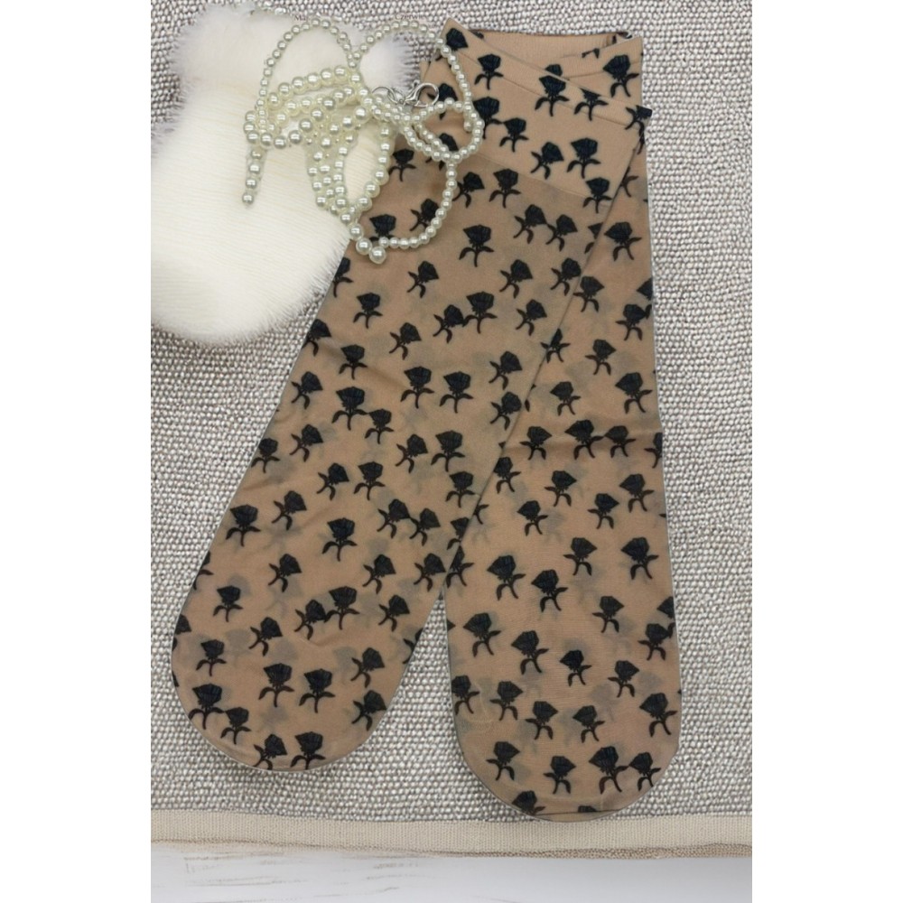 Damskie skarpetki wzorzyste wykonane z przędzy oplatanej. Wykończone modnym, luźno opadającym ściąga..