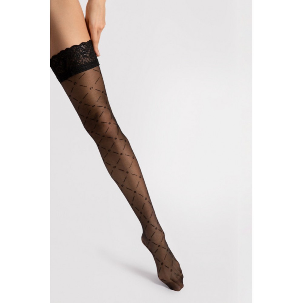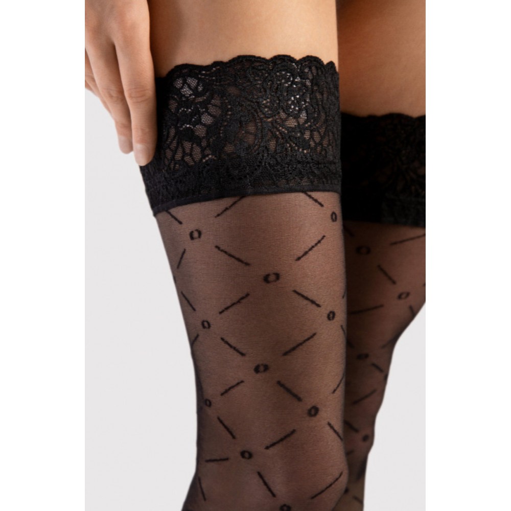 Чулки плотностью 20 ден. Изящный узор и декоративное эластичное кружево.