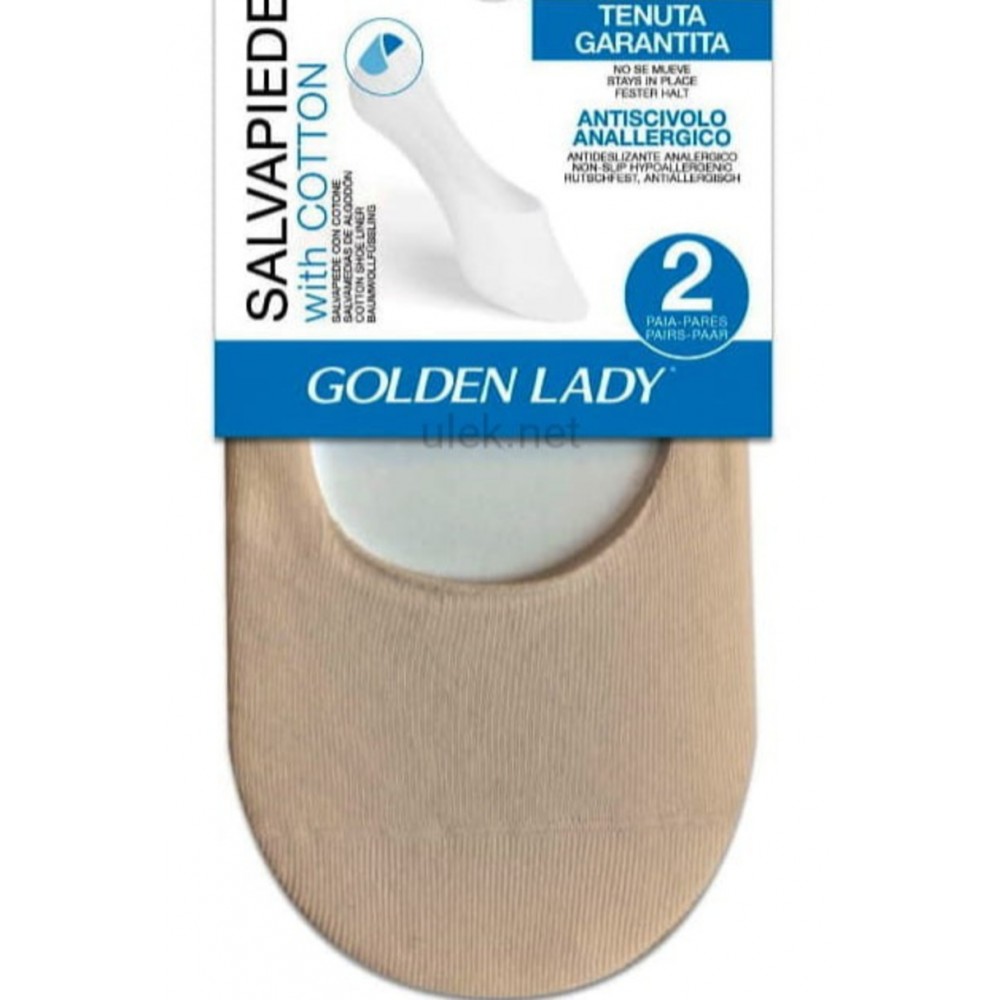 Komfortowe, niewidoczne stopki damskie typu balerinki włoskiej firmy Golden Lady. Bardzo cienkie, wykonane z bawełny z dodatkiem lycry. Na pięcie silikonowy pasek zapobiegające zsuwaniu się. Idealne do balerinek.