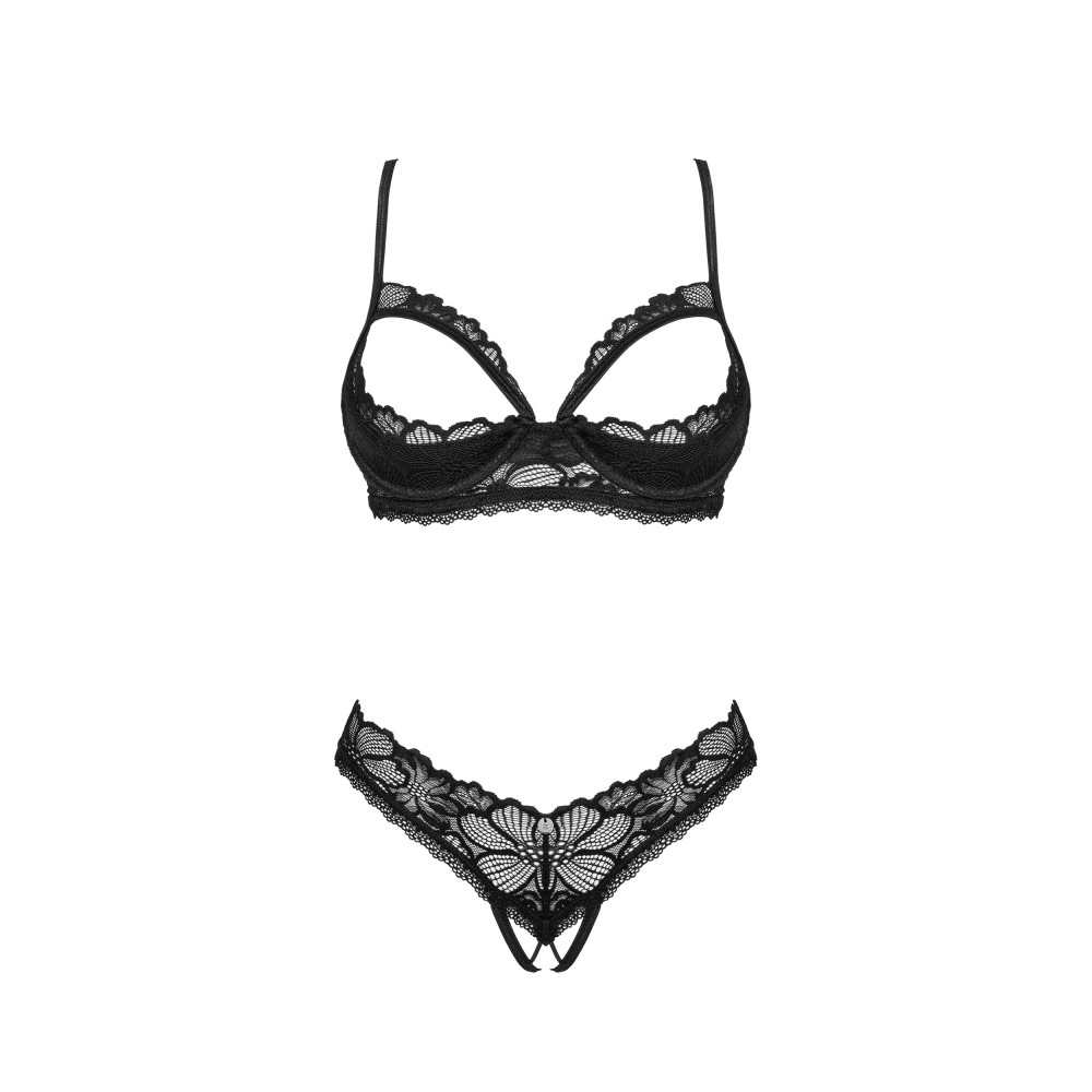 Не боитесь экспериментировать? Хотите подарить своему телу уникальное нижнее белье? Комплект Serafia – это изысканное сочетание элегантности и немного пикантности. Легкость черного кружева побалует вашу кожу и позволит вам чувствовать себя комфортно. Необычайно соблазнительный дизайн выреза подчеркнет вашу женственность, добавит уверенности в себе и оживит атмосферу. Незабываемые моменты, наполненные близостью, гарантированы. Взгляните на детали: