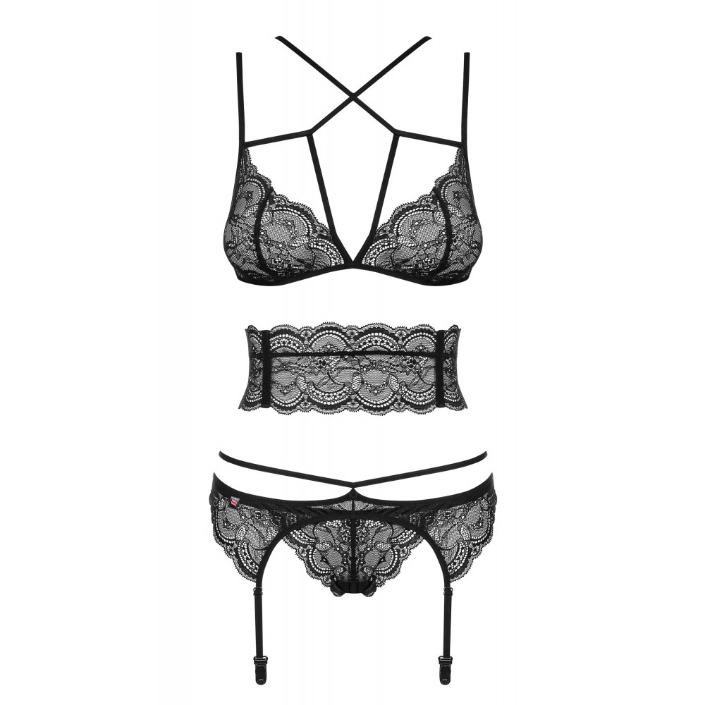 Невероятно восхитительно и соблазнительно. Оно окутает ваше тело нежнейшим кружевом и игривыми полосками – от декольте до ягодиц. Откройте для себя набор Frivoll! Каждая из четырех стихий позволит вам сотворить настоящий фурор. Откройте для себя необыкновенные эффекты кружевного пояса. Оно соблазнительно украсит вашу талию и добавит кокетливого шарма. Будет идеально! Посмотрите уникальный комплект: потрясающий комплект из 4 предметов, нежный, кружевной бюстгальтер - слегка подчеркнутые изгибы, многоступенчатая застежка и регулируемые бретели в бюстгальтере - идеальная посадка, впечатляющее сочетание визуально регулируемых эластичных лент! на декольте кружевной пояс с вертикальными косточками и многоступенчатой застежкой - сексуальный оголенный пояс на талии! регулируемый пояс для чулок с кокетливой бретелькой вокруг бедер, комплект из кружевных стрингов, в комплект не входят чулки, приятный на ощупь, эластичный материал( 90% полиамид, 10% эластан).