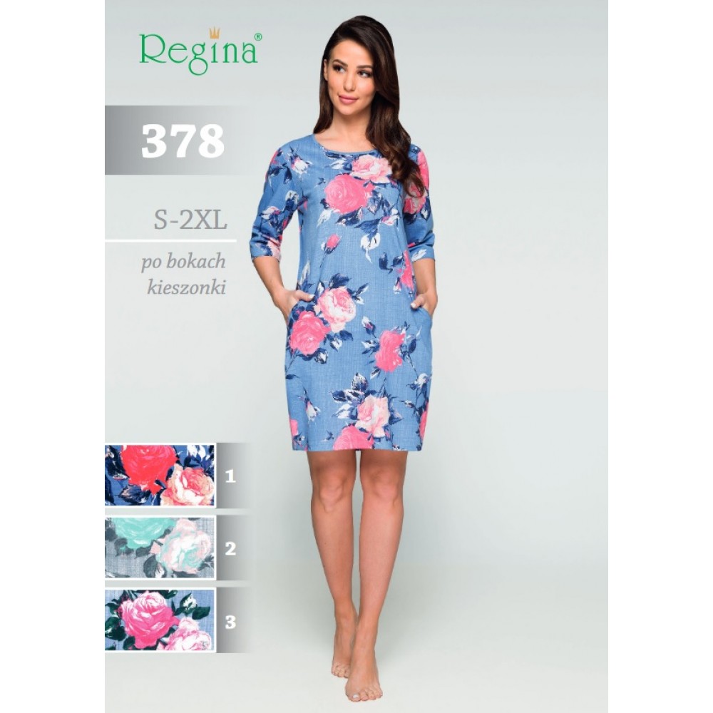 Женская ночная рубашка с цветочным принтом из высококачественного хлопка. Рукава три четверти, карманы на бедрах, длина до колена. Состав: 100% хлопок.