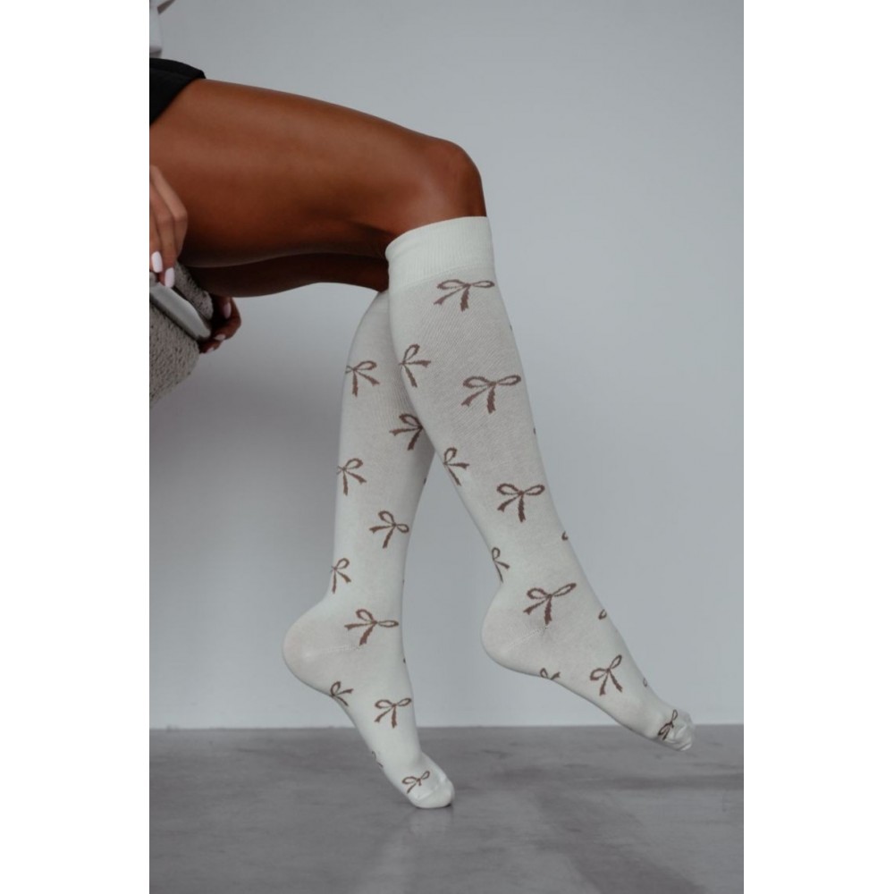 Eleganckie podkolanówki damskie we wzór uroczych kokardek to doskonały sposób n..