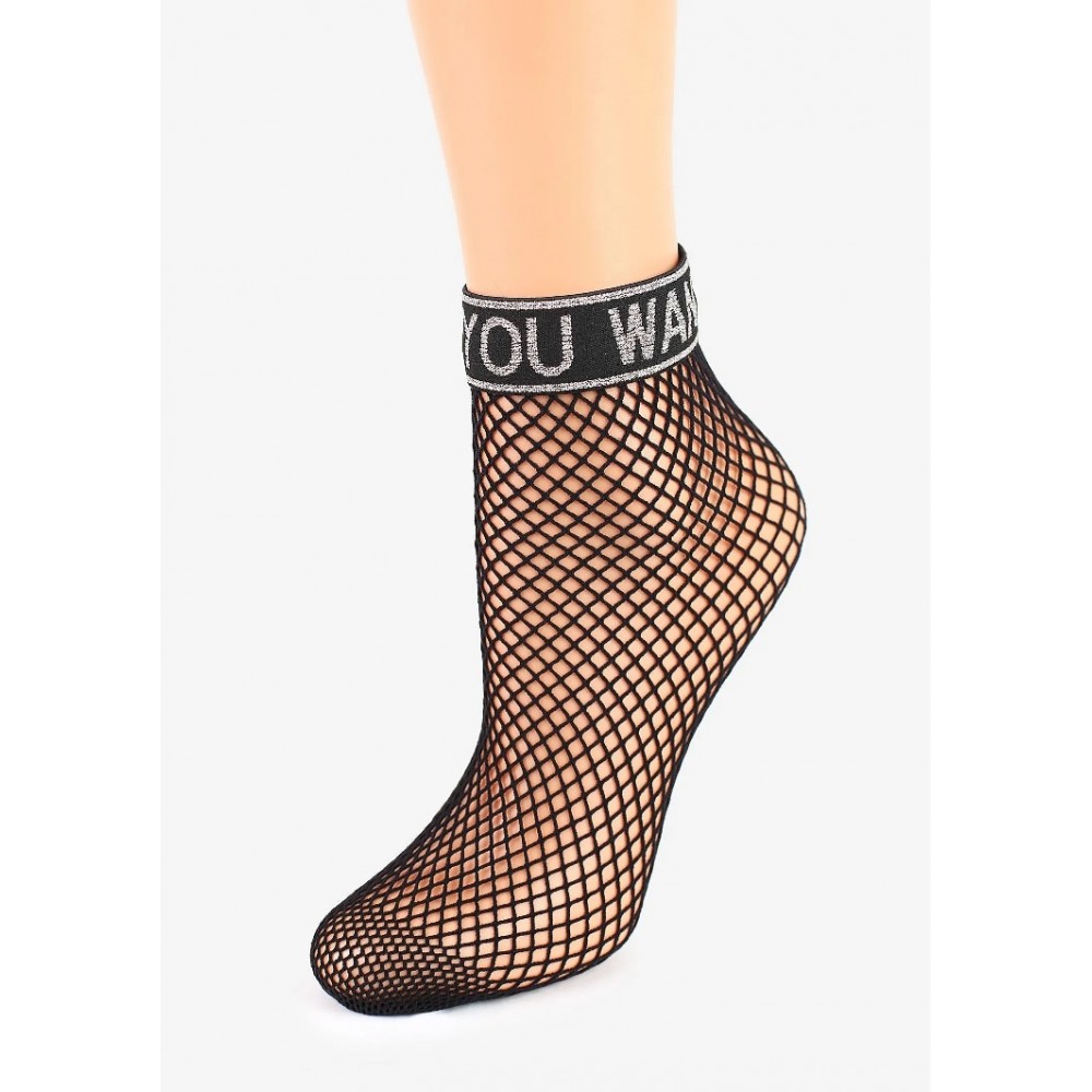 Женские носки в сетку с 32 ячейками. С невидимыми укрепленными мысками и декоративной резинкой с надписью. Они станут идеальным дополнением к любому образу. Состав: 92% нейлон, 8% эластан.