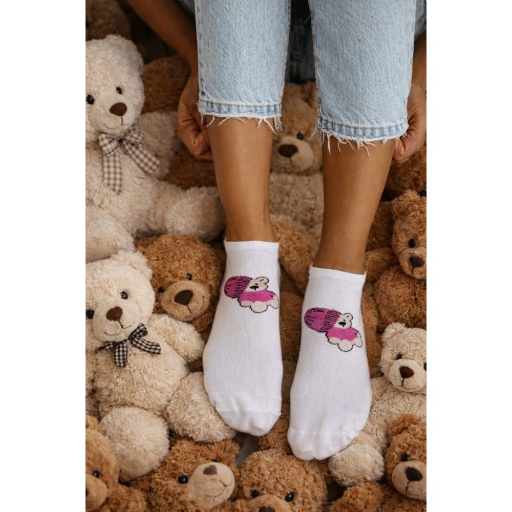 Эти женские хлопковые носки с изображением весёлого плюшевого мишки в шапочке — идеальное сочетание ..