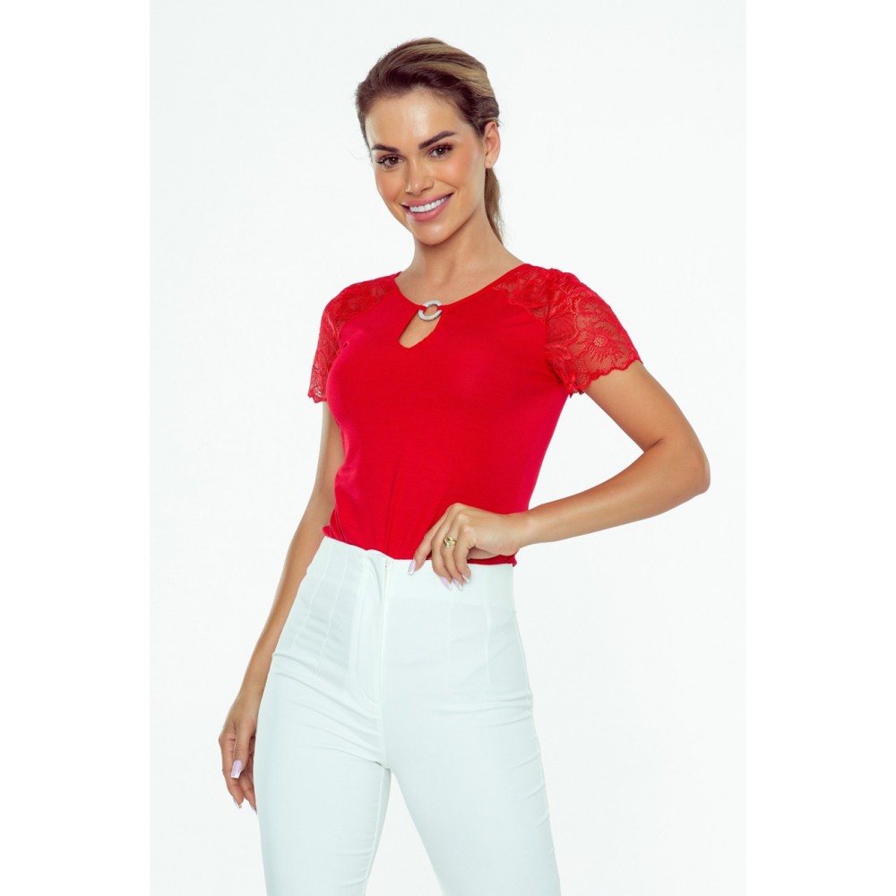 Женская вискозная блузка с большим кружевным вырезом. Рукава 3/4. Состав: 85% вискоза, 10% полиамид,..