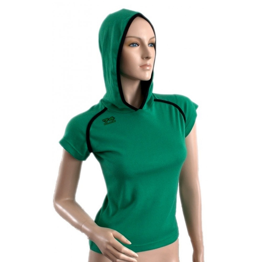 Женская спортивная футболка с короткими рукавами и капюшоном. Изготовлена из высококачественного хло..