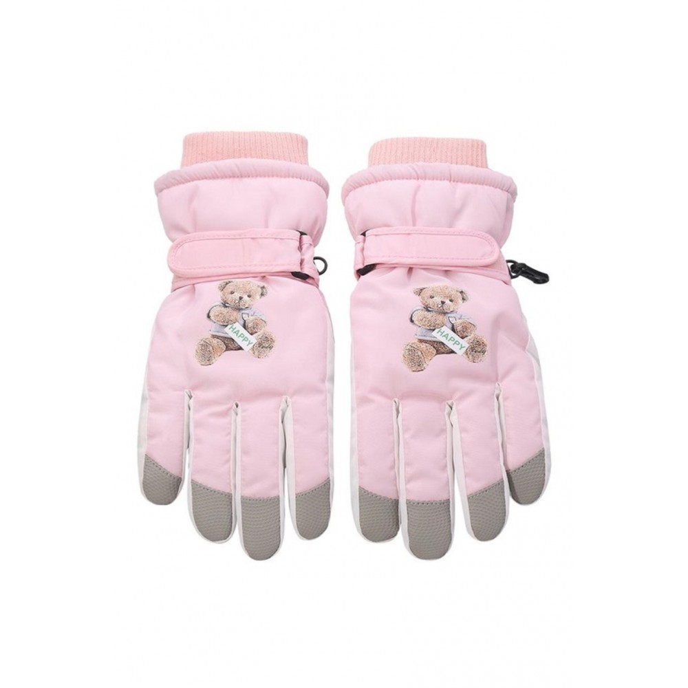 Перчатки для девочек из нейлона с принтом, утеплённые, пятипалые. Манжеты с регулируемыми ремешками обеспечивают надёжную посадку и защиту от снега.