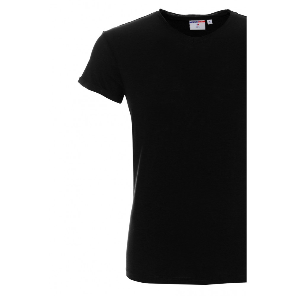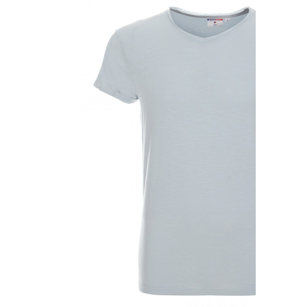 Мужская футболка из органического хлопка с V-образным вырезом. Мягкая и приятная на ощупь ткань джерси с фактурой лоскутного плетения. Необработанный вырез горловины, тройные подгибы и прострочка рукавов, саржевая тесьма на горловине, тесьма на плечах и двойной нижний край. Состав: 100% полугребенной хлопок, плотность: 150 г/м².