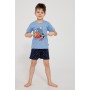 Пижама SPORT для мальчиков — идеальный выбор для активных мальчиков в летние ночи. Изготовленная из 100% высококачественного, мягкого и дышащего хлопка, она обеспечивает максимальный комфорт во время сна и свободу движений. Футболка с коротким рукавом украшена ярким спортивным принтом спереди, что придает всему образу энергичный и современный вид.