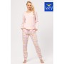 Piżama damska bawełniana, spodnie flanelowe w kratkę, koszulka bawełniana jednolita.
