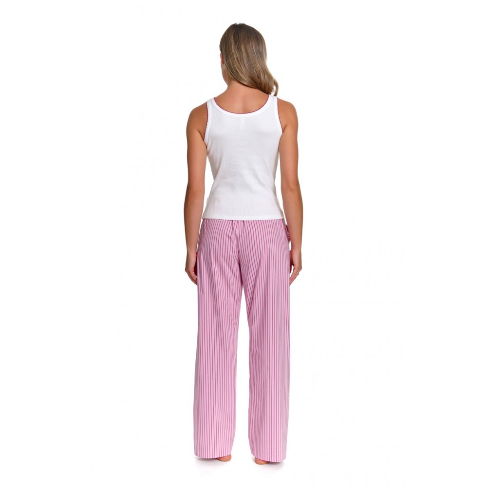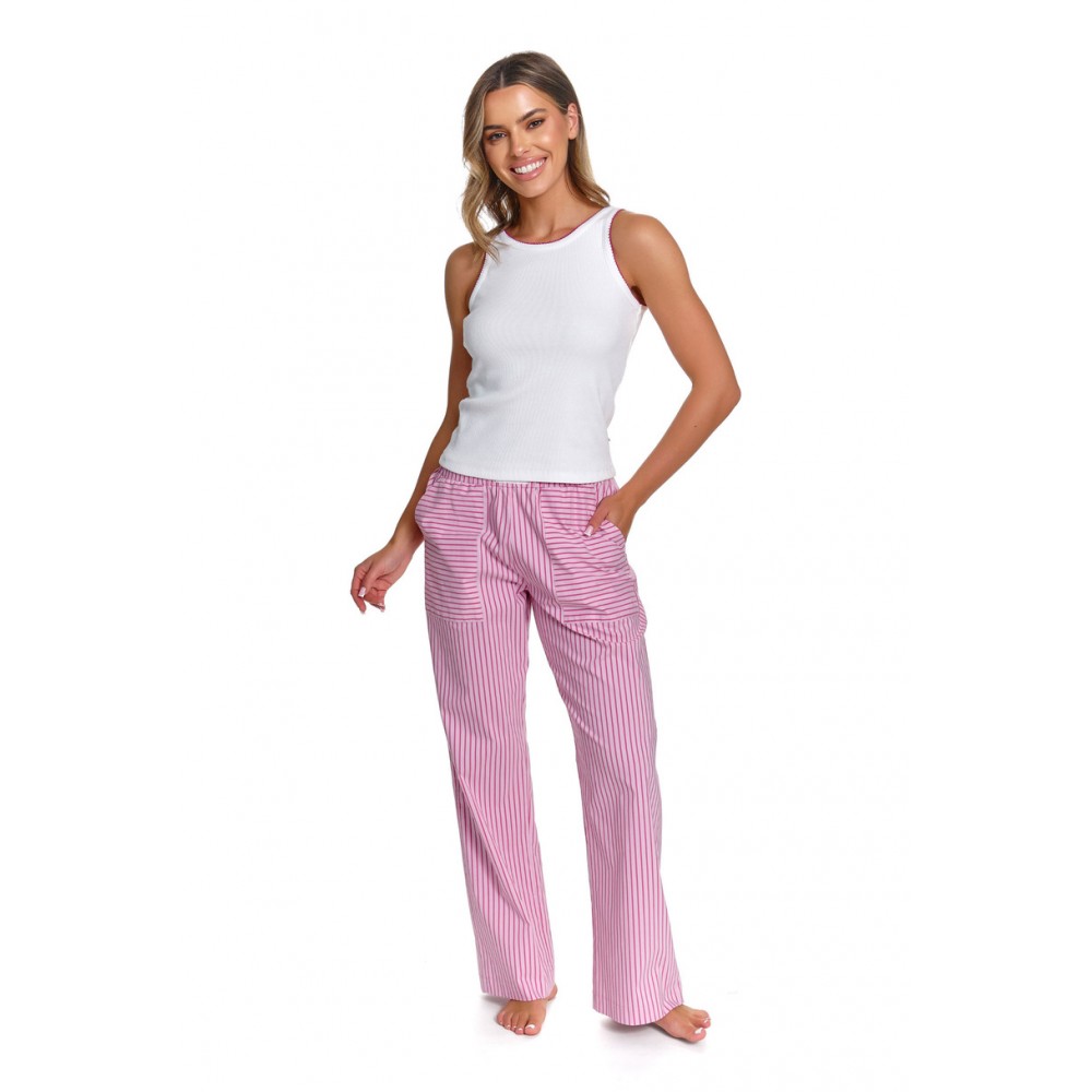 Пижамный комплект PM.7425 DR NAP для женщин — это женственный розовый комплект с нежными полосками, сочетающий классический стиль с комфортом современной домашней одежды. Гладкая майка выполнена из мягкой ребристой трикотажной ткани (95% хлопок, 5% эластан), обеспечивающей идеальную посадку и комфорт на протяжении всей ночи. Изящно обработанный вырез горловины подчеркивает эстетичный и утонченный характер изделия.
