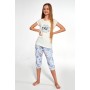 Пижама для девочек из высококачественного мягкого хлопка. Футболка с короткими рукавами и ярким принтом спереди. В комплекте капри с рисунком. Упакована в коробку.