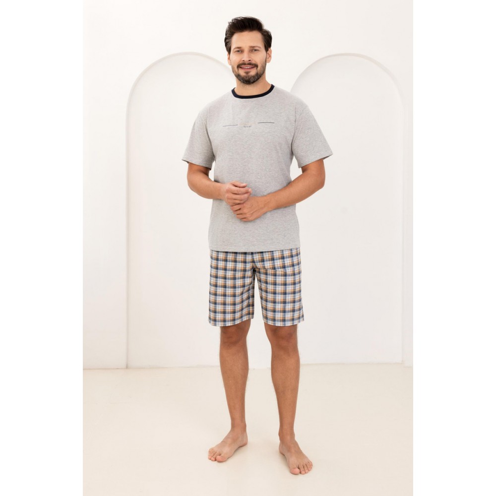 Мужская пижама 502 W/26 REGINA — это классический комплект для сна, изготовленный из 100% высококачественного хлопка, обеспечивающий комфорт и достаточную воздухопроницаемость на протяжении всей ночи. Футболка с коротким рукавом и круглым вырезом гарантирует свободу движений и удобную посадку. Шорты с классическим клетчатым узором добавляют стильный, мужественный штрих. Эластичный пояс, отделанный мягким хлопком, предотвращает точки давления и повышает комфорт. 502 W/26 REGINA — идеальный мужской пижамный комплект для теплых ночей и повседневного отдыха дома.