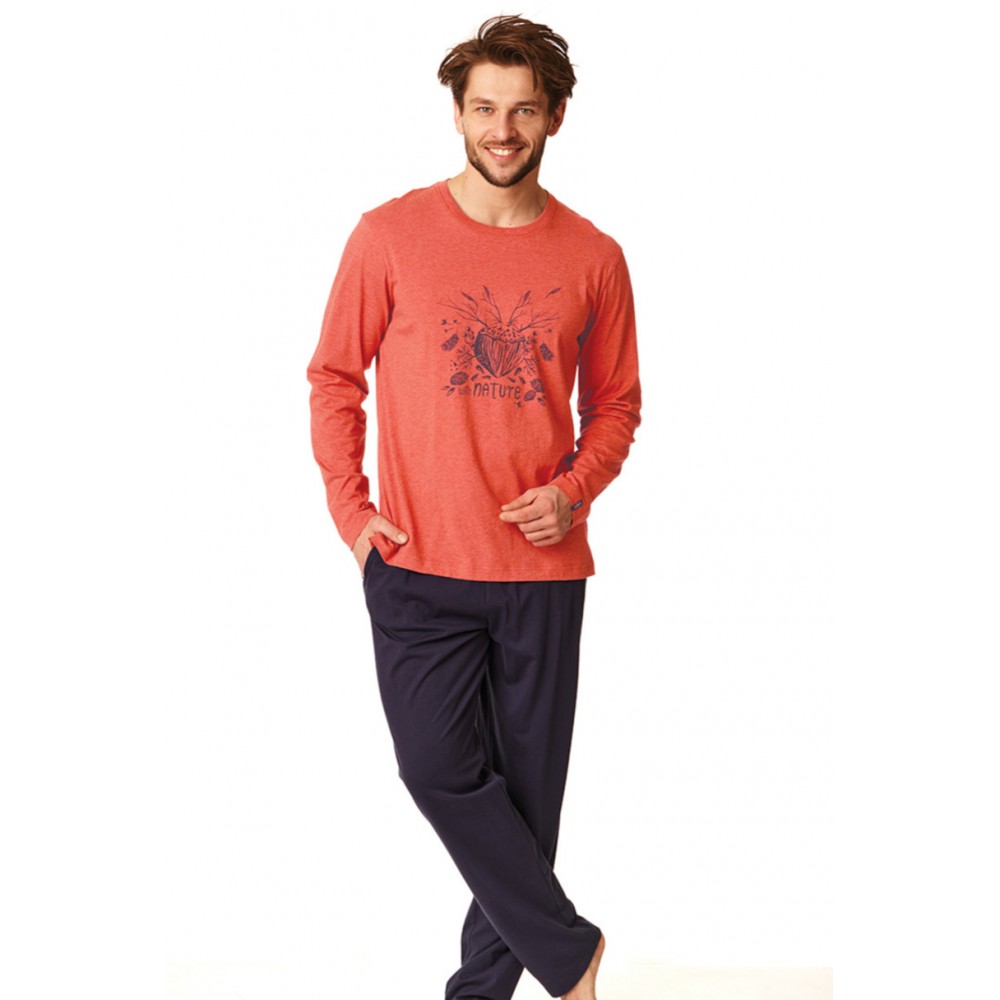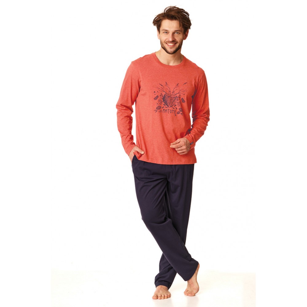 Универсальная мужская пижама. Изготовлена полностью из исключительно мягкого, высококачественного хлопкового трикотажа. Натуральное волокно обеспечивает тепло и исключительный комфорт. Классический крой верха и низа. Толстовка с круглым вырезом. Штаны с удобными карманами.