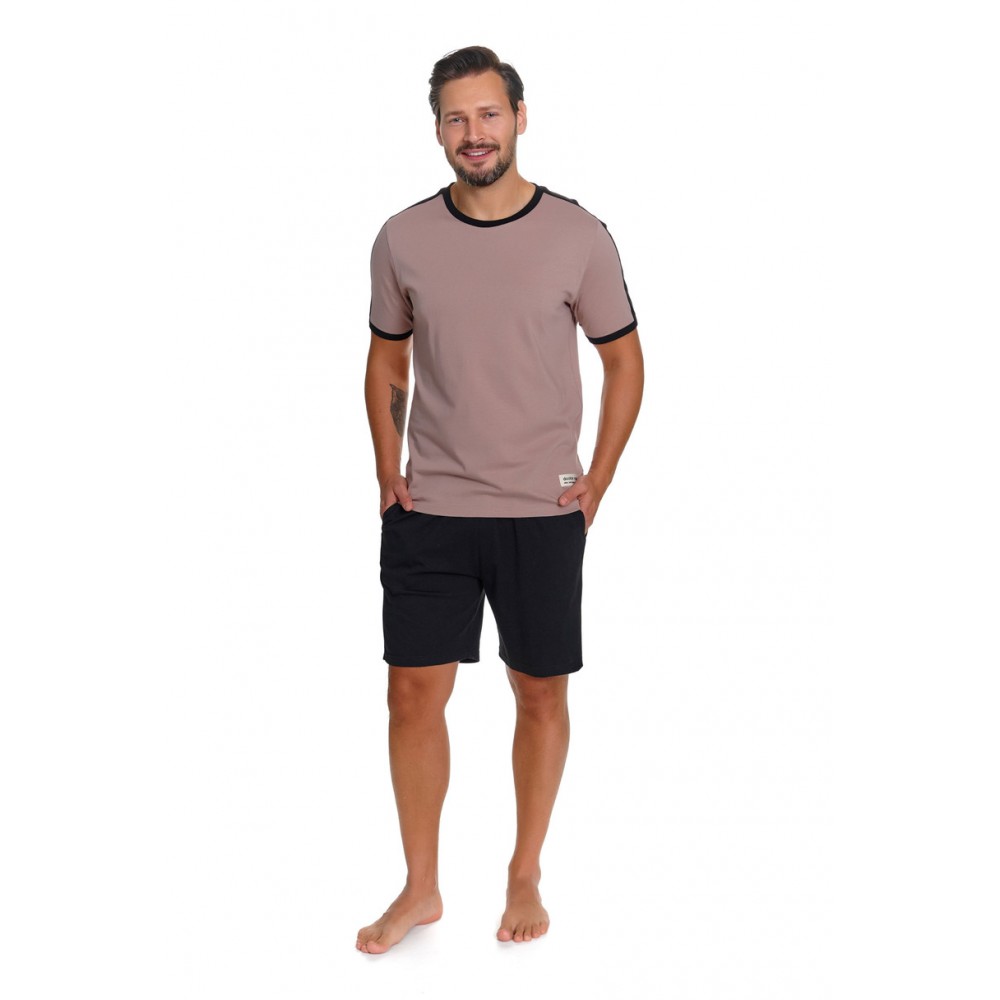 Gładki T-shirt w modnym odcieniu beige posiada subtelne logo Doctor Nap, które podkreśla minimalistyczny i elegancki charakter zestawu. Swobodny, komfortowy krój nie krępuje ruchów i gwarantuje pełną wygodę użytkowania. Jednolite spodenki nadają kompletowi lekko sportowego stylu, a praktyczne kieszenie po bokach zwiększają funkcjonalność.