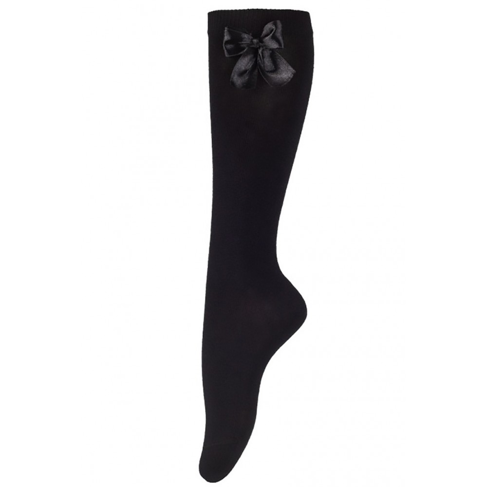 Гольфы для девочек, однотонные, хлопковые, с пришитым бантиком. Состав: 87% хлопок, 11% полиамид, 2% эластан.