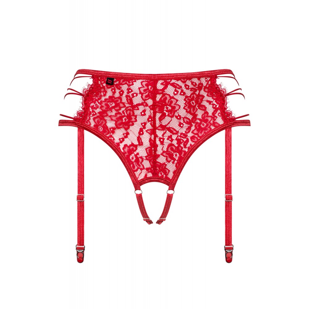 Сюрприз! Мы подготовили для вас замечательный пояс для чулок со стрингами 2 в 1. Пусть красный цвет, фантастическое кружево и крой модели Rediosa соблазнят вас. Все это увенчано свободно плетеными ремнями на бедрах. Нежная ткань, фривольный крой, нежный узор... вот что приходит на ум, когда слышишь «чувственное белье», правда? Ваш мужчина будет только мечтать снять с вас эту уникальную подвязку. Познакомьтесь с этой моделью поближе: модель 2 в 1: пояс для чулок и стринги - необыкновенный пояс для чулок - смелый цвет, невинно прозрачное кружево! цветочный кружевной узор - классическая элегантность по бокам эластичные бретели - женственный вид регулируемые подвязки - гарантия идеальной посадки открытая промежность с регулировкой - соблазнительный элемент приятный, гибкий материал (90% полиамид, 10% эластан)