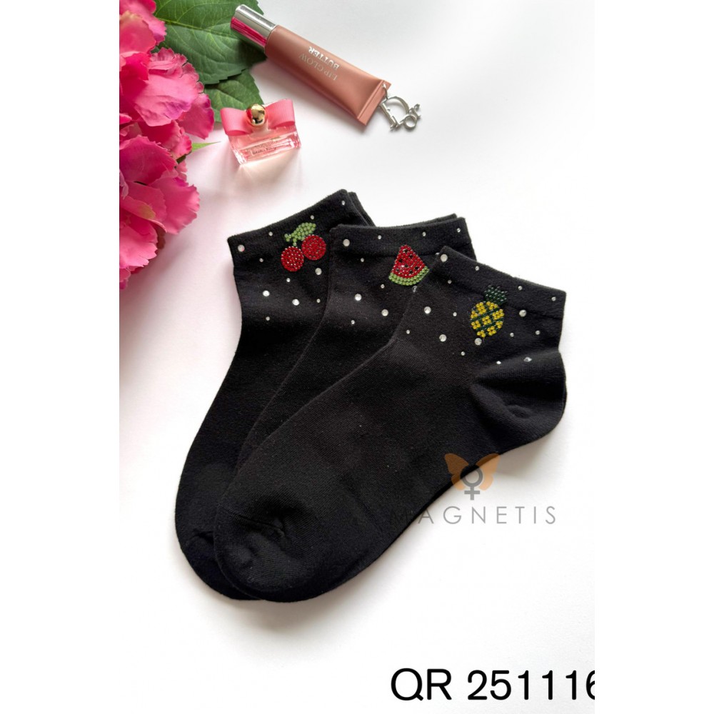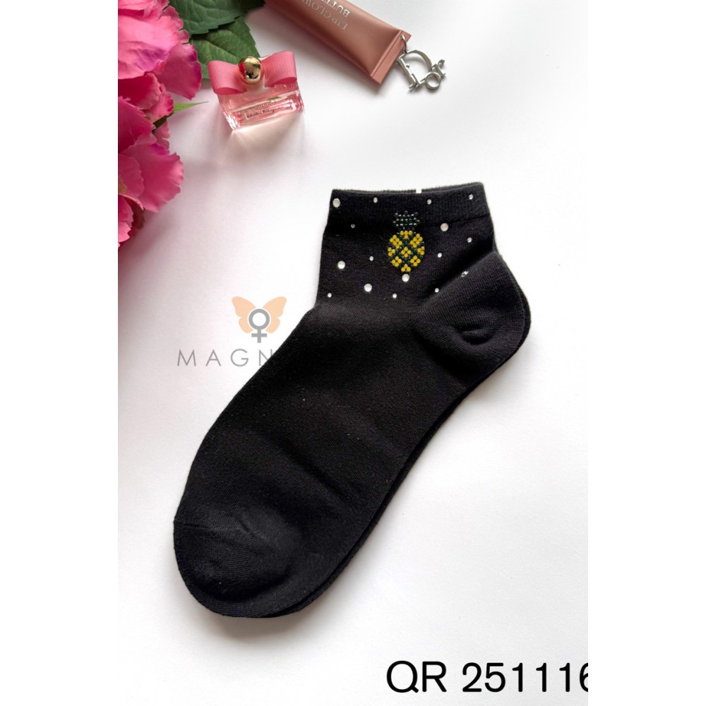 Женские носки Magnetis QR251116 06 с аппликацией — стильный и модный аксессуар, который идеально дополнит повседневный образ. Классический черный цвет разбавлен яркой аппликацией в виде ананаса и ненавязчивыми декоративными элементами, придающими дизайну уникальный и женственный характер. Эти носки с узором идеально подойдут женщинам, которые ценят модные детали и оригинальные акценты. Высокое содержание хлопка (92%) гарантирует мягкость, воздухопроницаемость и комфорт в течение всего дня. Добавление эластана (8%) обеспечивает эластичность и идеальную посадку, благодаря чему носки не сползают и сохраняют свою форму даже после многократной стирки. Материал приятен для кожи и устойчив к деформации. Модель QR251116 06 идеально подходит для повседневного, городского и спортивного стилей. Они прекрасно сочетаются с кроссовками, кедками или лоферами. Носки Magnetis с аппликацией сочетают в себе комфорт, качество и модный дизайн.