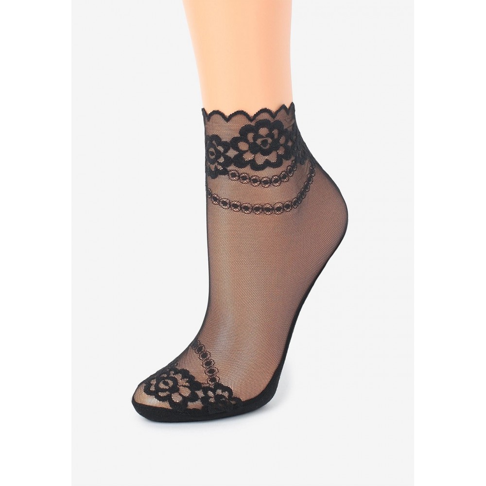 Женские хлопковые носки до щиколотки с красивым кружевным узором. Состав: 60% хлопок, 30% полиамид, 10% эластан.