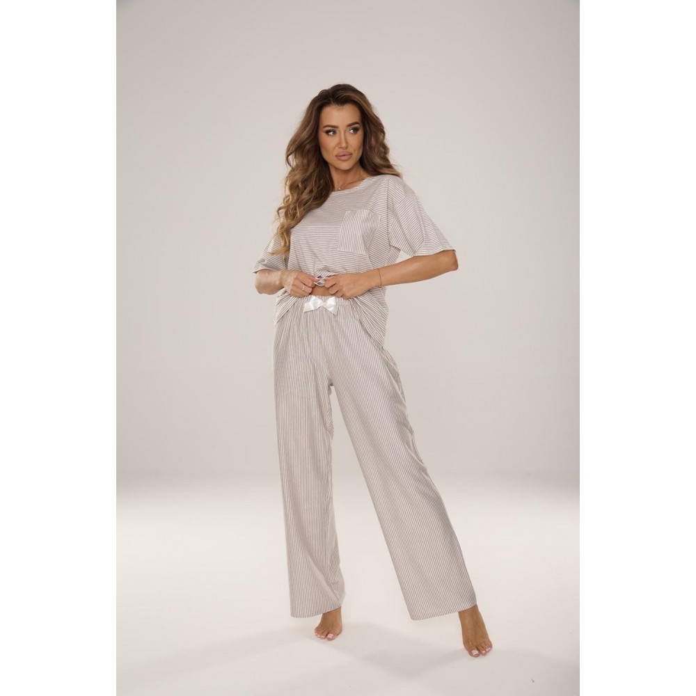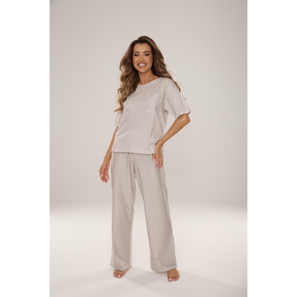 Piżama damska Camelia 037 to połączenie naturalnego komfortu i funkcjonalnego designu. Wykonana w 100% z wysokiej jakości bawełny, zapewnia doskonałą przewiewność oraz miękkość, dzięki czemu idealnie sprawdzi się zarówno podczas snu, jak i domowego relaksu. Krótki rękaw i długie spodnie gwarantuje swobodę ruchów i komfort, a praktyczna kieszeniń podkreśla codzienny wygodny i charakter piżamy. To doskonały wybór dla kobiet ceniących naturalne materiały, wygodę i klasyczny styl.