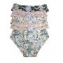 Винятково ніжні та тонкі жіночі трусики з квітковим принтом, виготовлені з високоповітропроникного та гігроскопічного матеріалу. Упаковані по 12 штук у різних кольорах та розмірах (S, M, L). Склад: 67% нейлон, 33% спандекс.