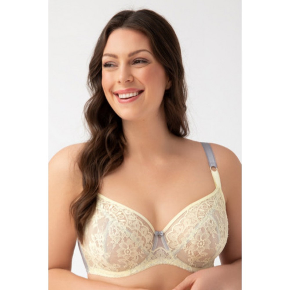 М’який бюстгальтер для жінок із середніми та великими грудьми, сильно висунуті в бік - бюст зібраний в середній ефекті підняття бюста 3 -х частинного чашки ширини ремінця (14, 18, 22) гачка з триступеневою оболонкою 2 ряду - ремінь 14 3 рядок - ремінь 18, 22 нижня чашка: стабільна тюль -стайна з новою стайною, стабільна стайна. Верхня чашка - край чашки сягає аж до ремінця ремінця (кращої підтримки бюста) ланцюга: верхній край, закінчений м'яким, приємним до сенсорних трубопроводів для збільшення комфорту контурного мосту, виготовленого з 2 шарів стабільної тюлю та стабільної мереживної сторони баски зі стійкого тюлю та міцного мережива з боків прозора лайкра з сітчастою структурою, що забезпечує дуже хорошу підтримку + вставки з міцного мережива з боків плоскі кісточки, щоб бюстгальтер ідеально прилягав до тіла. Металеві кільця та регулятори пастельно-жовтого кольору (без нікелю) Склад: 90% поліамід, 7% еластан, 3% поліестер