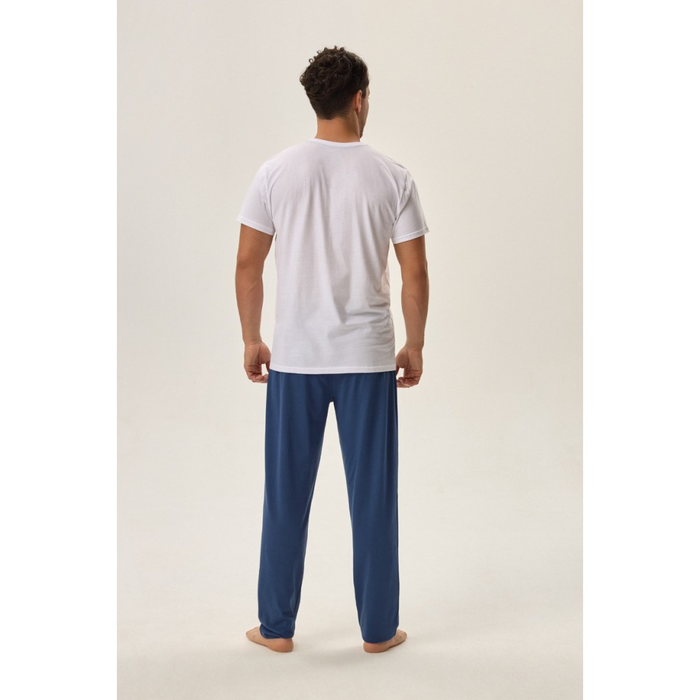 Чоловіча бавовняна піжама, довгі штани з еластичним поясом та логотипом Henderson. Футболка з короткими рукавами. Круглий виріз горловини, дрібний принт на грудях.