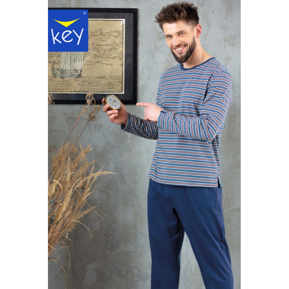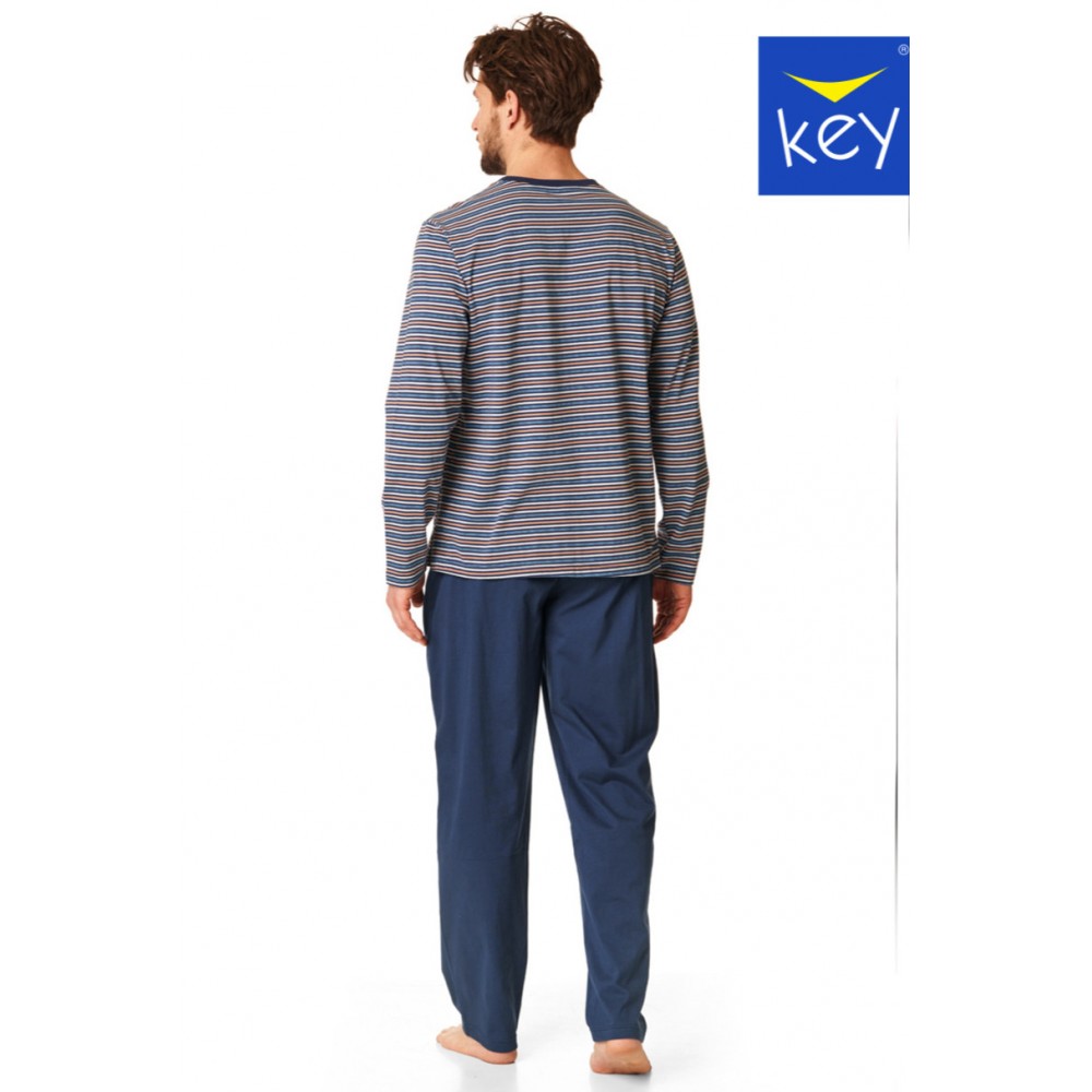 Чоловіча бавовняна піжама. Футболка в смужку з довгими рукавами, темно-сині штани.