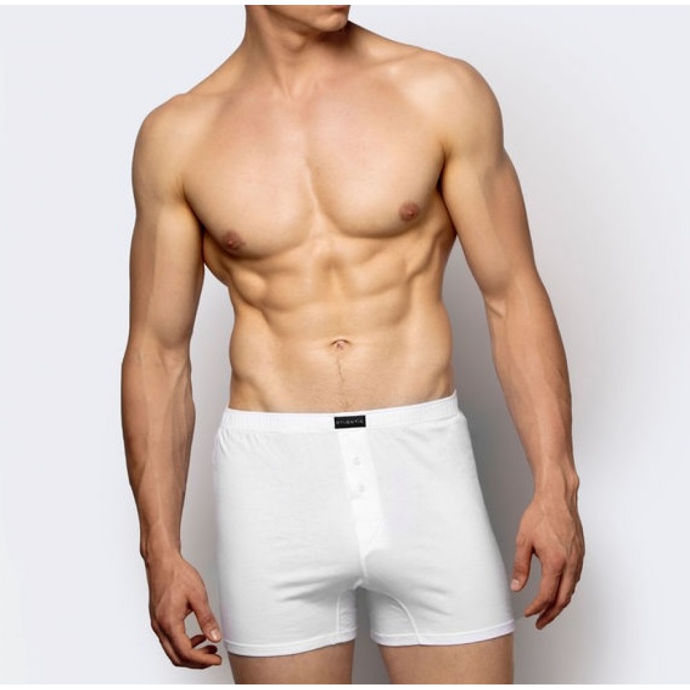 Klasyczne luźne bokserki o standardowej wysokości talii i długiej nogawce, posiadają rozporek na dwa..
