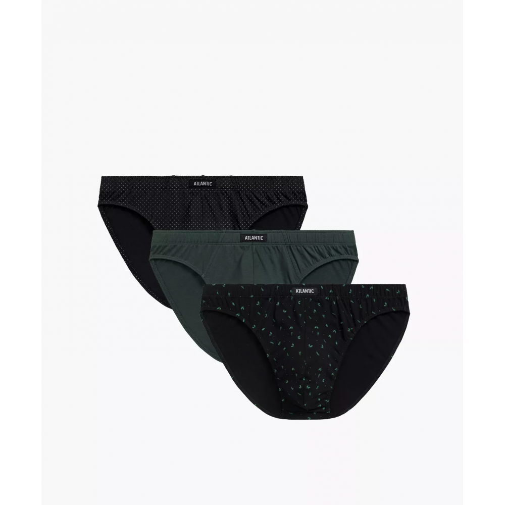 Чоловічі міні-труси, упаковані по три штуки. Високий виріз навколо стегон, низький пояс з ледь поміт..