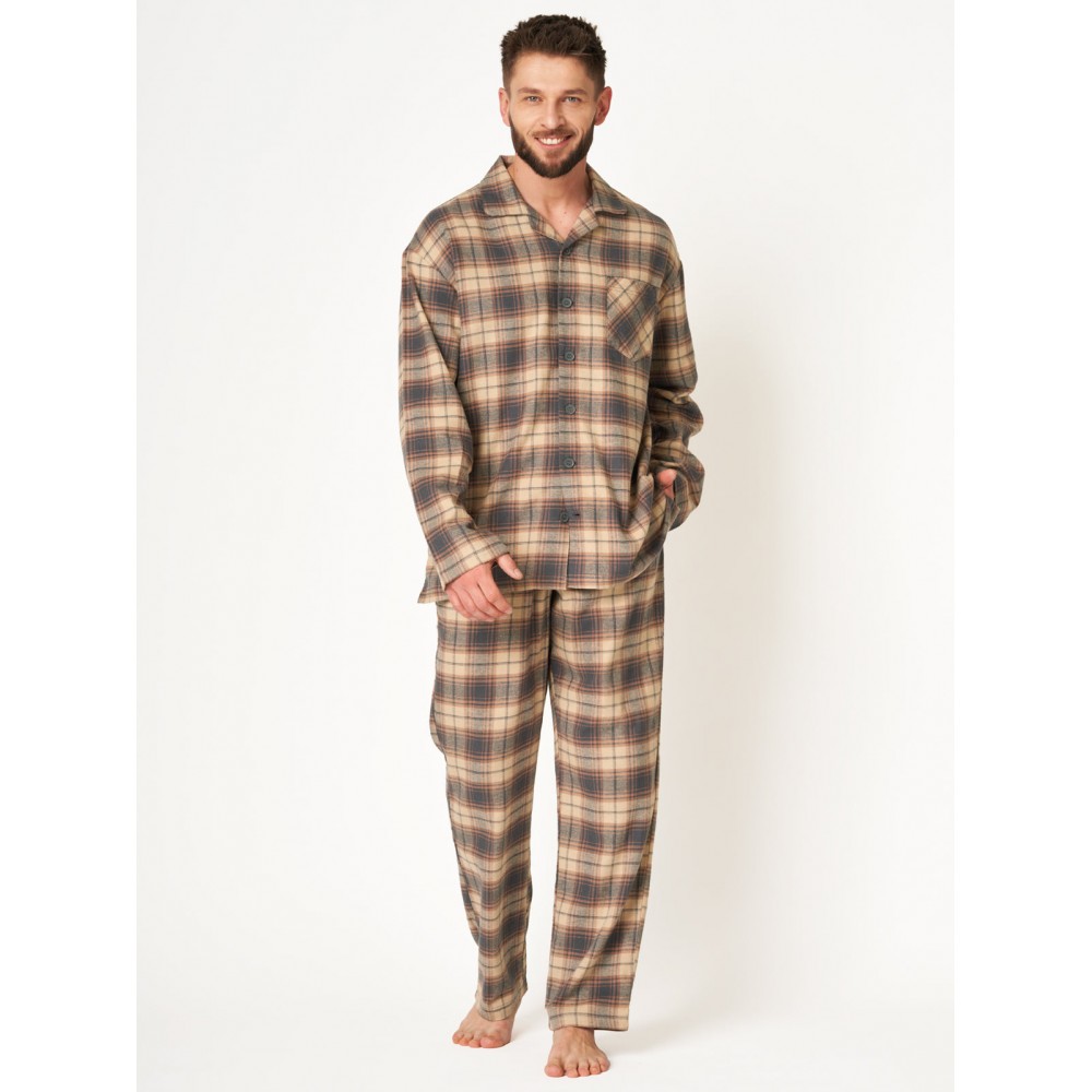 Чоловіча піжама з високоякісної бавовни. Светр з довгими рукавами та круглим вирізом з принтом спере..