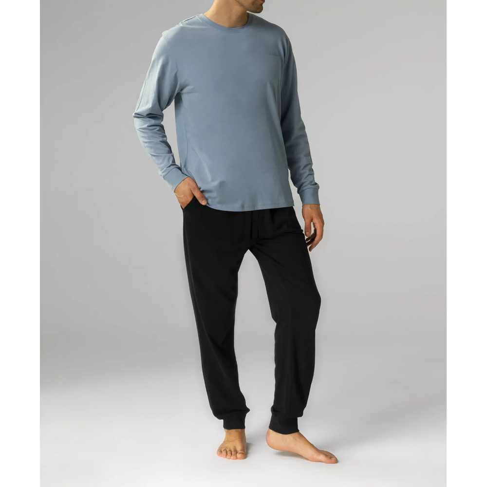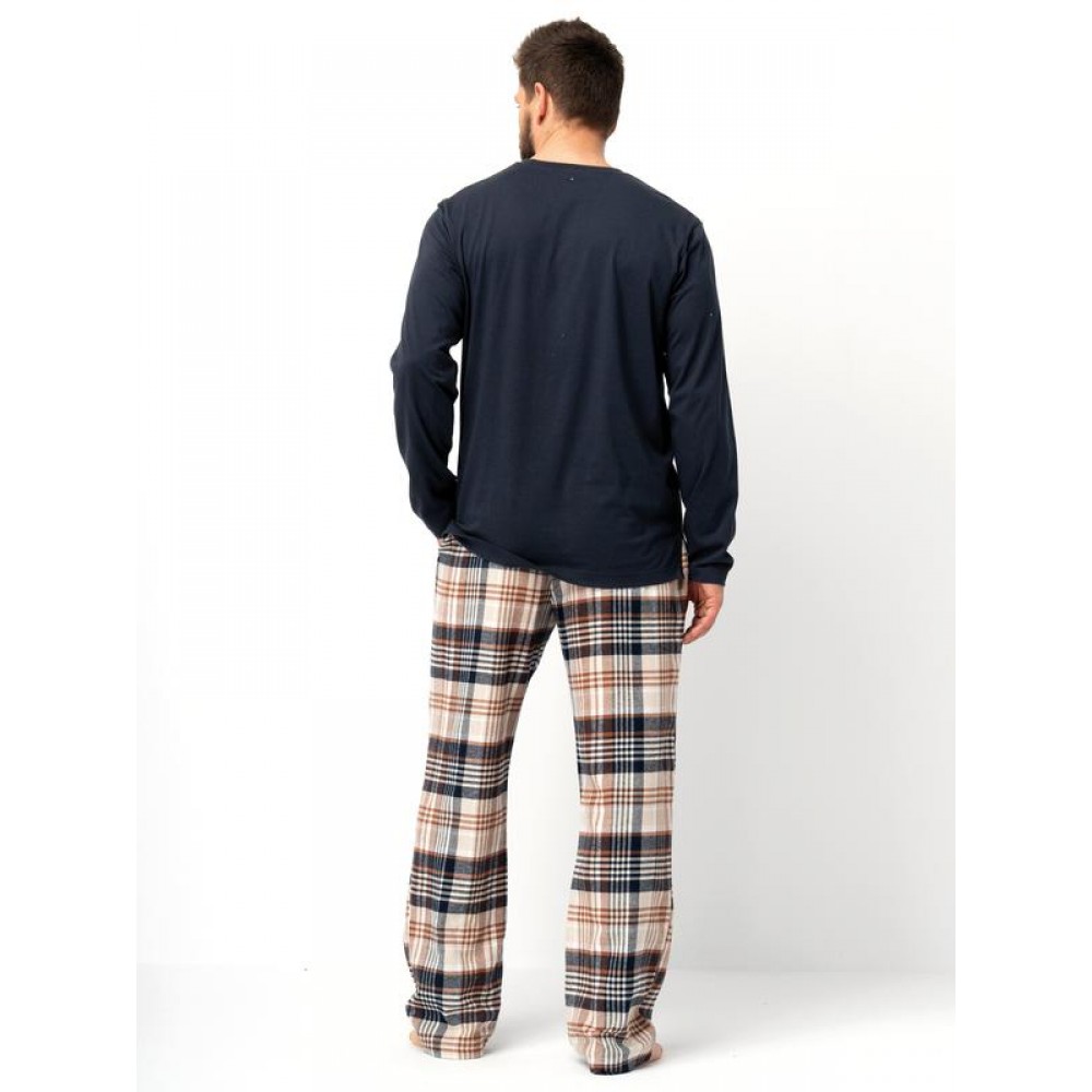 Чоловіча піжама з високоякісної бавовни. Футболка з довгими рукавами, V-подібним вирізом та декорати..