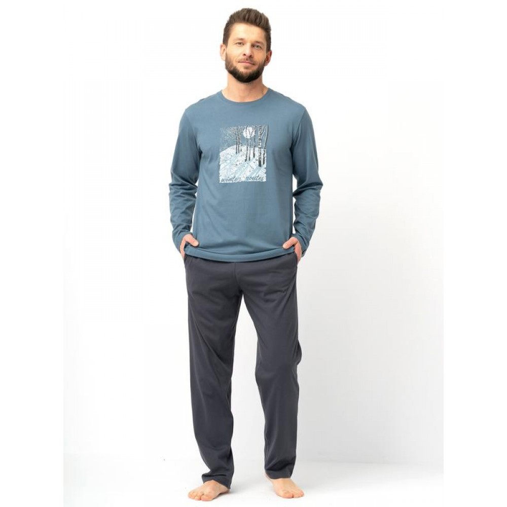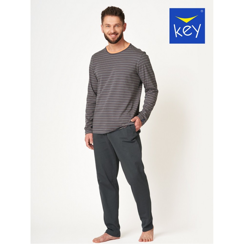 Стильна чоловіча піжама з натуральної бавовни. Сіра смугаста блузка з довгим рукавом у поєднанні з к..